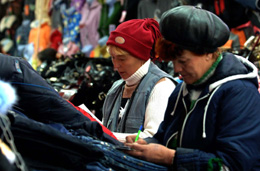 這是兩位來(lái)自俄羅斯的服裝商在滿洲里采購(gòu)。 |