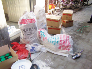 四合院出租房屋內(nèi)制造假冒劣質(zhì)胡椒面制假現(xiàn)場(chǎng)