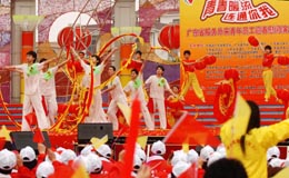 2月11日,在佛山市禪城區(qū)南莊青年文化廣場,共青團廣東省委和省勞動廳等部門為3000多名春節(jié)不回家的外來務工人員送去文藝節(jié)目,感謝他們?yōu)榻ㄔO廣東做出的貢獻。圖為來自廣州的文藝團體在表演。