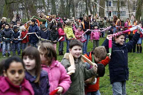 聯(lián)合國兒童基金會2月14日出爐一份報告,對21個富裕國家的兒童生活狀況進行橫向比較,包括貧富、安全、教育成果、與家長的關系以及對毒品的誤用等。結果荷蘭、瑞典、丹麥和芬蘭等北歐國家占據(jù)了綜合排名的前幾位,英國排名墊底,美國倒數(shù)第二。這是2007年2月13日,孩子們在荷蘭鹿特丹展示一條500米長的圍巾。