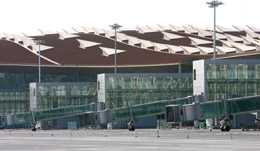 這是首都機(jī)場(chǎng)新建3號(hào)航站樓和登機(jī)棧橋的外景。 |
