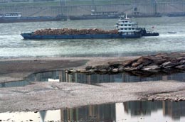2月25日11時20分左右,一艘名為“順風(fēng)3號”的重載輪船在位于重慶主城區(qū)的長江重慶港豬兒磧水域擱淺,引起這段長江航道斷航,大量船舶不得不滯留在擱淺輪船的上下水域。圖為擱淺的重載輪船。
