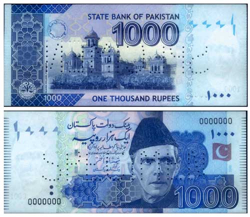 這張2月24日拍攝的照片顯示的是巴基斯坦發(fā)行的新版1000盧比紙幣的正面和反面圖案。巴基斯坦中央銀行當(dāng)天正式發(fā)行了1000盧比的新版紙幣。新紙幣采用了先進(jìn)的防偽技術(shù),大大減小了被偽造的風(fēng)險。