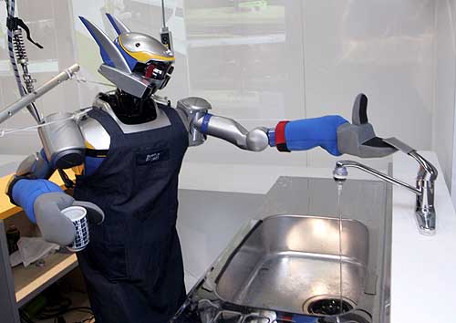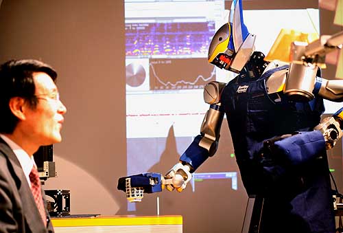 2月28日,日本東京大學(xué)研制的“HRP-2”機(jī)器人在該大學(xué)內(nèi)演示向人提供茶水服務(wù)。這種機(jī)器人是專門用來(lái)做日常家庭服務(wù)的。