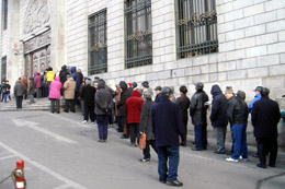 3月1日,在哈爾濱一家銀行門外,等候購買國債的人們排起了長隊。