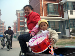 2月6日,村民王菊從超市買(mǎi)來(lái)蛋糕準(zhǔn)備給孩子過(guò)生日。 由于采煤塌陷,安徽省淮北市烈山區(qū)洪莊村的生態(tài)環(huán)境遭到嚴(yán)重破壞,洪莊村成為有名的貧窮落后村。近幾年來(lái),洪莊村堅(jiān)持以實(shí)施塌陷地綜合治理為突破口,走出了一條獨(dú)具特色的社會(huì)主義新農(nóng)村建設(shè)之路。 2006年,經(jīng)過(guò)全體村民表決,該村投資8000萬(wàn)元、占地200畝、建筑面積14.4萬(wàn)平方米,總計(jì)960套的農(nóng)民新村公寓。目前,一座功能齊全、設(shè)備先進(jìn)的農(nóng)民小區(qū)在塌陷區(qū)上崛起,春節(jié)前夕,洪莊村380戶(hù)農(nóng)民遷入新村。 |