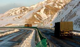 3月7日,兩輛貨車(chē)通過(guò)已經(jīng)恢復(fù)通車(chē)的北京至拉薩高速公路烏海段。當(dāng)日,受降雪天氣影響封閉的北京至拉薩高速公路(110高速)內(nèi)蒙古段全線(xiàn)恢復(fù)通車(chē)。