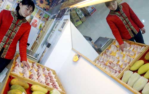 3月20日,工作人員在鄭州一臺灣農(nóng)產(chǎn)品專賣店整理物品。當天,為擴大臺灣產(chǎn)農(nóng)產(chǎn)品在大陸的銷售,商務部決定大陸正式開始對原產(chǎn)臺灣地區(qū)的11種蔬菜和8種水產(chǎn)品實施進口零關稅措施。