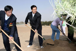 4月1日,黨和國(guó)家領(lǐng)導(dǎo)人胡錦濤、吳邦國(guó)、溫家寶、賈慶林、曾慶紅、吳官正、羅干來(lái)到北京奧林匹克森林公園,同首都勞動(dòng)模范、綠化先進(jìn)工作者、奧運(yùn)志愿者和基層干部群眾代表以及少先隊(duì)員一起植樹(shù)。