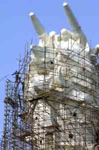 4月3日,工作人員開始拆除建在河南新鄭市始祖山的“華夏第一祖龍”工程的腳手架。