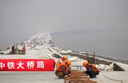 杭州灣跨海大橋海上540片70米巨型箱梁目前已經(jīng)架設(shè)完成520片,完成96%,比合同工期提前七個(gè)月,預(yù)計(jì)兩個(gè)多月后即可全線貫通。杭州灣跨海大橋全長(zhǎng)36公里,是目前世界上最長(zhǎng)跨海大橋。