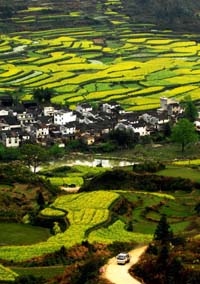婺源江嶺漫山遍野的油菜花。