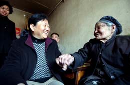 4月3日,蘭州市城關(guān)區(qū)渭源路街道蘭州大學(xué)社區(qū),社區(qū)工作人員在和81歲的趙蘭英聊天。蘭州市城關(guān)區(qū)民政部門投入100萬元,在全區(qū)129個社區(qū)展開居家養(yǎng)老服務(wù)工作,使全區(qū)1000多名老年人居住在家就能享受到政府提供的養(yǎng)老服務(wù)。
