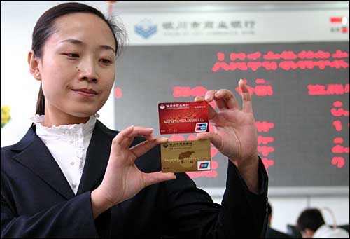 4月23日,銀川市商業(yè)銀行工作人員對比新舊銀聯(lián)如意借記卡。中國銀聯(lián)從7月1日起,將停止“94”字頭如意借記卡的跨行取款和刷卡消費(fèi)業(yè)務(wù)。新卡片磁條信息上除了記錄持卡人的個(gè)人資料之外,還添加有CVN校驗(yàn)碼,該校驗(yàn)碼是防范克隆卡和偽卡交易的重要手段,可保護(hù)持卡資金安全。凡持“94”字頭的如意借記卡客戶須到銀行各網(wǎng)點(diǎn)免費(fèi)更換新標(biāo)準(zhǔn)如意借記卡。