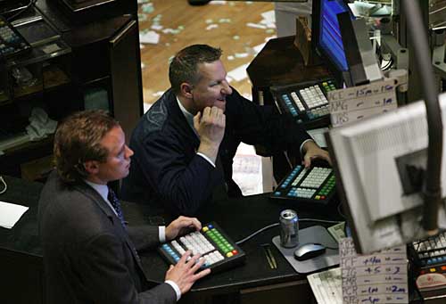 24日,兩名交易員在美國紐約證券交易所股票交易大廳工作。當(dāng)日紐約股市收盤時,道瓊斯指數(shù)較前一個交易日上漲34.54點,收于12953.94點,漲幅為0.27%。道瓊斯指數(shù)盤中曾創(chuàng)下12989.86點的歷史新高,步步迫近13000點大關(guān)。