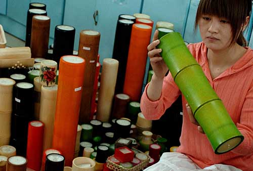 5月9日,工人正在檢查竹制工藝品質(zhì)量。安徽省舒城華竹實業(yè)有限公司立足當?shù)刂褓Y源和悠久的竹編歷史,以“公司+基地+農(nóng)戶”的形式,帶動當?shù)貜臉I(yè)人員8000多人,其生產(chǎn)的千余種竹制餐具、竹制工藝品、竹制包裝物等產(chǎn)品銷往日本、歐美、中東等40多個國家和地區(qū)。