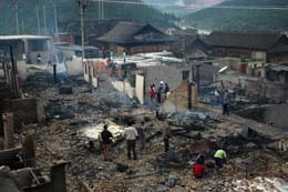 15日,村民清理被燒毀的民房。當(dāng)日凌晨1時30分許,貴州省凱里市舟溪鎮(zhèn)果園村發(fā)生火災(zāi),八戶民房被燒毀,幸無人員傷亡。據(jù)調(diào)查,火災(zāi)是由于民房上空高壓線脫落并造成短路引發(fā)的。