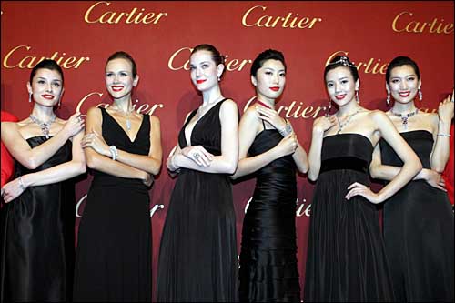 圖為模特在展示卡地亞最新珠寶首飾。日前,國(guó)際知名珠寶品牌卡地亞在香港將軍澳邵氏影城隆重登場(chǎng)。110余件珠寶彰顯了卡地亞“珠寶商的皇帝,皇帝的珠寶商”的品質(zhì)。