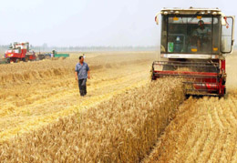 5月28日,大型聯(lián)合收割機(jī)在安徽潁上縣垂崗鄉(xiāng)收割小麥。連日來,安徽省各地天氣晴好,全省3200多萬畝小麥全面進(jìn)入收獲期。為搶農(nóng)時(shí),全省組織6.5萬臺聯(lián)合收割機(jī)會戰(zhàn)夏收,預(yù)計(jì)機(jī)收率將達(dá)94%。農(nóng)機(jī)部門還采取開辟農(nóng)機(jī)加油綠色通道、送油到田間等措施,確保機(jī)收工作順利進(jìn)行。 |