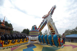 5月29日,一名工作人員從驗收完工的游樂設(shè)施——極速風(fēng)車旁走過。 “六一”兒童節(jié)前夕,一處生態(tài)型游樂園區(qū)——太陽島“笨熊樂園”在哈爾濱驗收完工,將于6月1日對游人開放。新規(guī)劃的太陽島“笨熊樂園”內(nèi)設(shè)有極速風(fēng)車、彈跳機、碰碰車、蕩蕩船、兒童攀巖等20余項游樂設(shè)施。此游樂園區(qū)還通過卡通故事將各個游樂設(shè)施串聯(lián)成為一個具有濃厚趣味的主題游玩路線,讓游人同時感受到自然生態(tài)和童話游戲的樂趣。 |