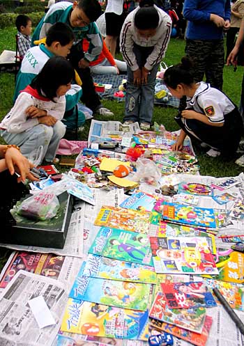 6月3日,孩子們?cè)谀暇┲行W(xué)生跳蚤市場(chǎng)上“淘寶”。當(dāng)日,南京中小學(xué)生跳蚤市場(chǎng)在南京花卉園拉開帷幕,眾多中小學(xué)生將使用過的玩具、書籍等用品帶到現(xiàn)場(chǎng)進(jìn)行交易。據(jù)介紹,舉辦此次活動(dòng)是為了培養(yǎng)孩子們的理財(cái)能力、溝通能力以及勤儉節(jié)約、誠(chéng)信的意識(shí)。