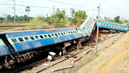 6月12日,鐵路工人在印度安得拉邦維沙卡帕特南附近的列車出軌現(xiàn)場勘察。一列印度特快列車在此發(fā)生事故,10節(jié)車廂出軌,造成4人死亡,60余人受傷。