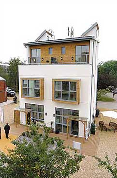 這也是英國(guó)第一座將來(lái)能夠大規(guī)模推廣的生態(tài)住宅,其環(huán)保設(shè)計(jì)能減少80%的燃料費(fèi)開(kāi)支,每年可為住戶節(jié)約能源費(fèi)開(kāi)支800英鎊。英國(guó)政府有規(guī)定,購(gòu)買售價(jià)為12.5萬(wàn)~25萬(wàn)英鎊的不動(dòng)產(chǎn),消費(fèi)者需繳納大約1%的印花稅。但如果花20萬(wàn)英鎊購(gòu)買類似生態(tài)住宅,就可免繳2000英鎊的印花稅。 候任英國(guó)首相戈登·布朗上周也宣布,英國(guó)計(jì)劃將推出2000套類似的生態(tài)住宅。 公司總裁斯圖亞特·米爾恩表示:“這是未來(lái)5年內(nèi)能大規(guī)模推廣到市場(chǎng)的原創(chuàng)性生態(tài)住宅。而該住宅一旦大規(guī)模推廣,這種建筑就可能被授予‘六星級(jí)’最高星級(jí)的認(rèn)證!边@座生態(tài)住宅的造價(jià)還不清楚。但公司方面稱,其成本不會(huì)高于傳統(tǒng)的磚式或鋼筋混凝土式住宅。 |