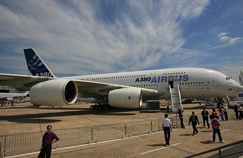19日,一架空中客車(chē)A380在法國(guó)巴黎的國(guó)際航空航天展上展出?湛虯380是目前世界上載客量最大的客機(jī),目前的訂單已達(dá)173架。