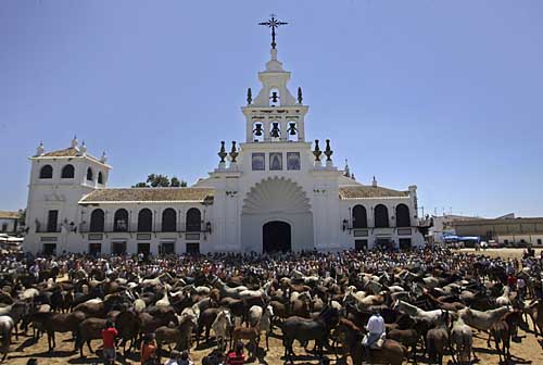 | 26日,在西班牙南部瓜達(dá)爾基維爾河口地區(qū)的埃爾羅西奧,人們?cè)凇膀?qū)趕母馬”活動(dòng)上將眾多母馬匯集到一起。瓜達(dá)爾基維爾河口地帶是西班牙南部著名的養(yǎng)馬地。每年6月26日,牧人們都要舉行“驅(qū)趕母馬”活動(dòng),將放養(yǎng)在河口地區(qū)多尼亞納國(guó)家公園里的母馬先集中到埃爾羅西奧,再集體趕往附近的阿爾蒙特參加傳統(tǒng)的牲畜集市。上百匹馬集體行動(dòng),場(chǎng)面蔚為壯觀。目前,這已經(jīng)成為當(dāng)?shù)刂匾哪翗I(yè)傳統(tǒng)文化活動(dòng)。 | |
