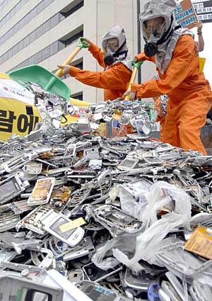 韓環(huán)保主義者要求妥善處理廢棄手機(jī)