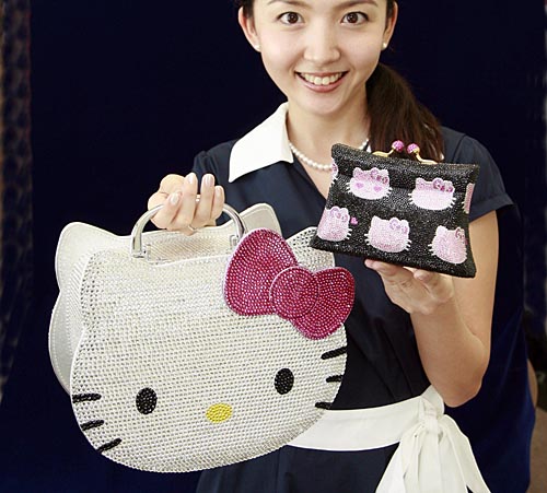 圖為,在日本首都東京的三里公司總部,一名職員展示凱蒂貓圖案的化妝包。三里公司將從7月24日起開始銷售這些最新設(shè)計的凱蒂貓制品。自1974年三里公司首創(chuàng)“凱蒂貓”卡通形象以來,這只圓臉的可愛小貓便風(fēng)靡全球,它的形象曾出現(xiàn)在幾萬種不同產(chǎn)品上。