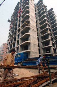 近日,山東濟南市對一座高達13層的違章建筑進行拆除,工程建設相關單位和責任人也受到嚴厲處罰。這座違章建筑名叫“白鶴高層住宅樓”,既無規(guī)劃許可證,也沒有施工許可證,執(zhí)法部門多次下達停工令,但是仍然建成13層約一萬平方米。圖為7月11日,工人在樓盤工地清理剩余的建筑材料。