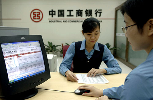 7月16日,中國工商銀行?诃偺┲泄ぷ魅藛T在為客戶辦理國債業(yè)務(wù)。財(cái)政部于當(dāng)日起發(fā)行總規(guī)模為383.8億元的2007年第十一期記賬式國債。本期國債為固定利率附息債,期限3年,經(jīng)投標(biāo)確定的票面年利率為3.53%。