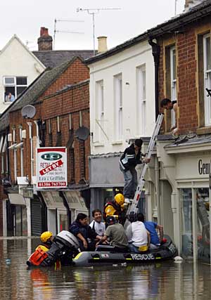21日,救援人員在英格蘭中部的伊夫舍姆救助受困的居民。英格蘭西部、中部和南部以及威爾士的許多地區(qū)20日和21日遭受暴雨襲擊,成千上萬的房屋被淹,居民或被迫撤離家園,或被洪水圍困在家中,還有許多人被困在嚴(yán)重堵塞的公路上,F(xiàn)在,英國(guó)全國(guó)仍有16個(gè)地方處于洪水緊急警報(bào)狀態(tài),70多個(gè)地方處于一般洪水警報(bào)狀態(tài)。 | |