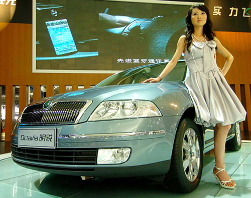 7月22日,一名車模在展示一款新車。當(dāng)日,第五屆中國長春國際汽車博覽會在長春國際會展中心閉幕。