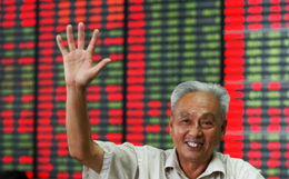 23日,在江蘇揚(yáng)州一證券交易大廳內(nèi),一位股民興奮地打著“5”的手勢(shì),慶賀上證綜指開盤突破5000點(diǎn)整數(shù)關(guān)口。當(dāng)日,上證綜指開盤承接22日升勢(shì)跳空高開,一舉突破5000點(diǎn)大關(guān),最終報(bào)收于5032.49點(diǎn)。 |