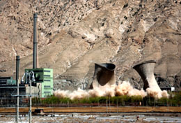 隨著國(guó)務(wù)院有關(guān)節(jié)約能源、減少污染物排放各項(xiàng)政策措施逐步發(fā)揮作用,全國(guó)單位國(guó)內(nèi)生產(chǎn)總值(GDP)能耗從去年至今呈現(xiàn)加速下降的趨勢(shì)。同時(shí),我國(guó)環(huán)保和生態(tài)建設(shè)力度加大。這是2007年4月20日,內(nèi)蒙古北方電力烏拉山電廠一、二期25萬(wàn)千瓦的電廠冷卻塔被成功爆破拆除(資料照片)。 |