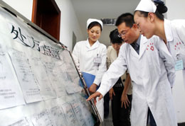 9月11日,寧夏中醫(yī)院醫(yī)護(hù)人員正在對公示處方進(jìn)行點(diǎn)評。近日,寧夏中醫(yī)院開展“工工整整處方 明明白白就醫(yī)”處方點(diǎn)評活動,不定期對該院醫(yī)生所開處方進(jìn)行公示點(diǎn)評。