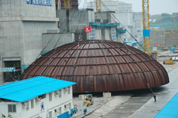9月23日,在建設(shè)中的嶺澳核電站二期工地,巨型吊車將總重量達150多噸的核島穹頂凌空吊起,緩緩移向已完成土建施工的1號機組核島頂部,準(zhǔn)確地安放在預(yù)定位置。此舉標(biāo)志著嶺澳核電站二期1號機組核島實現(xiàn)封頂,從土建施工階段全面轉(zhuǎn)向設(shè)備安裝階段。