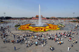 | 北京天安門廣場(chǎng)國(guó)慶花壇向游人開放 |