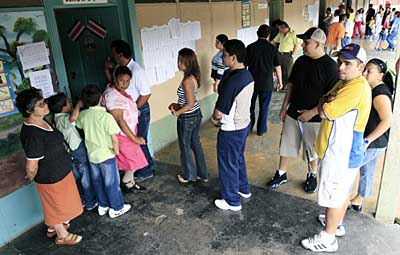 7日,在哥斯達(dá)黎加首都圣何塞,人們?cè)谝粋(gè)投票站排隊(duì)等候投票。當(dāng)天,哥斯達(dá)黎加就是否批準(zhǔn)中美洲與美國(guó)自由貿(mào)易協(xié)定舉行全民公決。2004年,哥斯達(dá)黎加、薩爾瓦多、危地馬拉、洪都拉斯、尼加拉瓜和多米尼加6國(guó)與美國(guó)簽署了中美洲與美國(guó)自由貿(mào)易協(xié)定。迄今為止,只有哥斯達(dá)黎加尚未批準(zhǔn)該協(xié)定。 | |