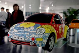 “奧運繪”藝術(shù)車大賽獲獎作品展日前在北京王府井舉行。這些彩繪車模作品運用青花瓷器、剪紙、京劇等中國元素,將奧運形象融合其中。