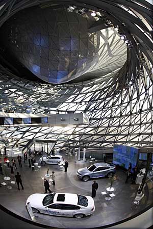 這張17日在德國慕尼黑拍攝的照片顯示的是“寶馬世界”汽車交付中心的內(nèi)部。位于德國寶馬汽車公司總部旁的“寶馬世界”汽車交付中心當日舉行落成典禮,并將在20日和21日對公眾開放。
