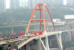 10月29日,重慶菜園壩長江大橋正式通車。菜園壩長江大橋是公路和軌道交通兩用鋼箱提籃拱特大橋,橫跨長江,是連通重慶主城的南北大通道。主橋長約800米、主跨達420米。