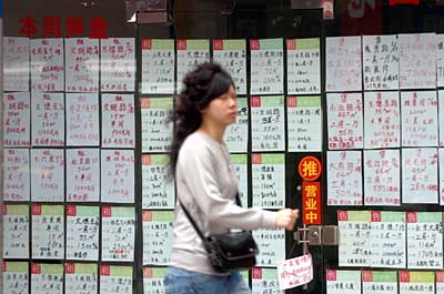11月1日,一位女士從廣州一家房地產(chǎn)中介公司櫥窗前走過。廣州市政府規(guī)定從當(dāng)日起,廣州無論一手還是二手房地產(chǎn)出售時(shí)都要將出售房屋基本信息和包括代收代管費(fèi)在內(nèi)的所有收費(fèi)項(xiàng)目、標(biāo)準(zhǔn)和依據(jù)全部在經(jīng)營(yíng)場(chǎng)所醒目位置采用價(jià)目表牌等形式公開標(biāo)示,并且房屋售價(jià)必須提前24小時(shí)公示。