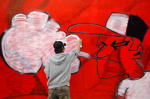 中國首屆涂鴉魅力藝術(shù)展近日在北京中國國際展覽中心亮相。展覽基本覆蓋了國內(nèi)涂鴉創(chuàng)作優(yōu)秀團隊及個人的作品,很多作品帶有濃烈的地域特征和文化色彩。不少團隊還現(xiàn)場進行了涂鴉創(chuàng)作。