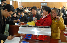 11月14日,哈爾濱市2007年度廉租住房抽簽選號(hào)儀式舉行,享受廉租住房待遇的市民在公證人員的監(jiān)督下依次抽簽選房號(hào)。當(dāng)天,哈爾濱市百余名享受廉租住房待遇的市民通過(guò)抽簽選號(hào)喜獲廉租新房。