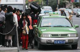 11月18日,乘客在上海徐家匯一出租車候車點候車。