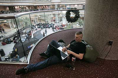 21日,一名乘客在美國(guó)亞特蘭大的哈茨菲爾德—杰克遜機(jī)場(chǎng)候機(jī)廳上網(wǎng)。每年11月的最后一個(gè)星期四是美國(guó)的感恩節(jié),這是美國(guó)人民獨(dú)創(chuàng)的節(jié)日,也是美國(guó)家庭吃團(tuán)圓飯、共品火雞大餐的日子。今年的感恩節(jié)是11月22日。美國(guó)空運(yùn)協(xié)會(huì)發(fā)布消息稱,今年為期12天的感恩節(jié)出行高峰從17日開(kāi)始,預(yù)計(jì)有2700萬(wàn)旅客搭乘商業(yè)航班出行,滿座率將達(dá)90%。 | |
