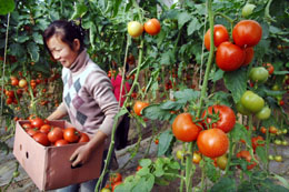 12月2日,塔橋村村民魏霞正在蔬菜大棚內(nèi)搬運剛采摘的西紅柿。2006年以來,寧夏引黃灌區(qū)加大政策和資金扶持力度,積極幫助農(nóng)民群眾發(fā)展日光溫棚為主的設施農(nóng)業(yè),截至目前,灌區(qū)又新建日光溫室8.7萬畝,總計達到34.8萬畝,發(fā)展現(xiàn)代設施農(nóng)業(yè)已經(jīng)成為當?shù)剞r(nóng)民增收致富的有效途徑。